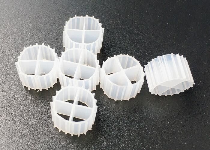 Color blanco 11*7mm Sistema de acuicultura de recirculación MBBR Material flotante de transporte hdpe de seguridad